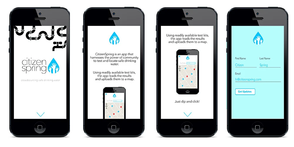 Citizen Spring is a project of Connected Future Labs that launched in June of 2016. It is an iOS application that brings water quality testing into the 21st century and empowers individuals to identify safe drinking water, free of lead and other contaminants. Working with readily available water test kits, the CitizenSpring app uses computer vision to read the test results and then uploads the results to a map, crowdsourcing the identification of safe water in our communities.
